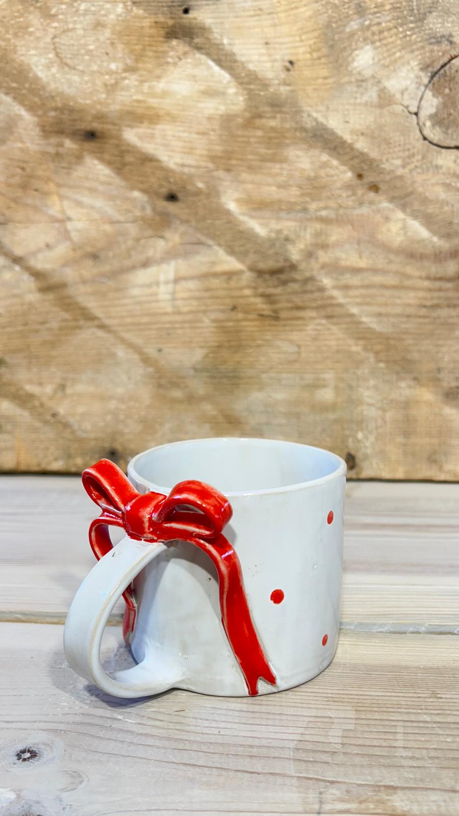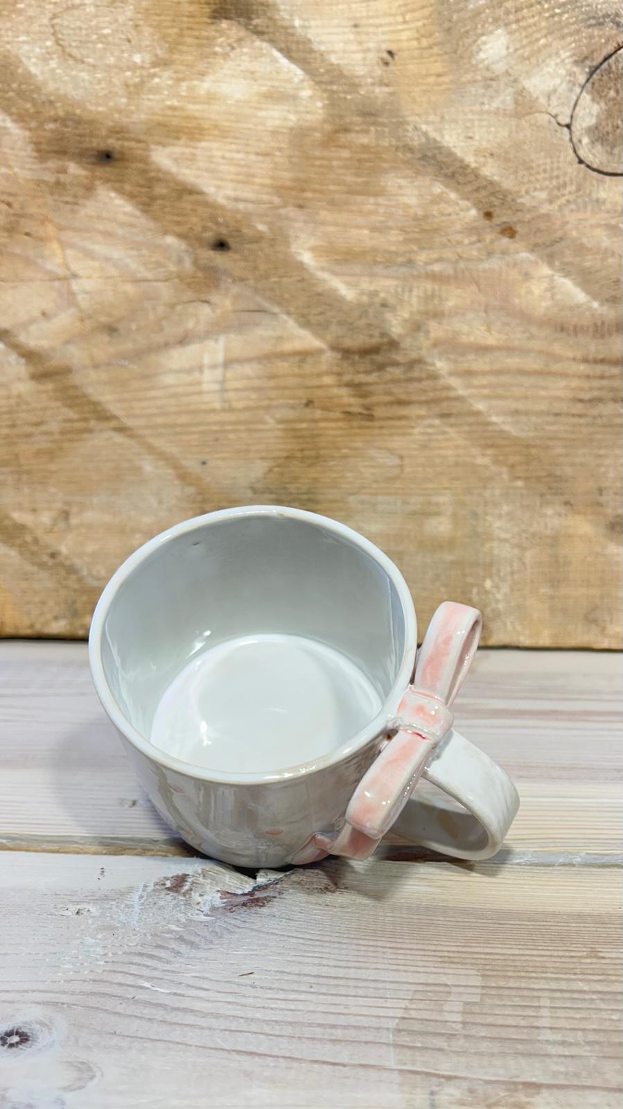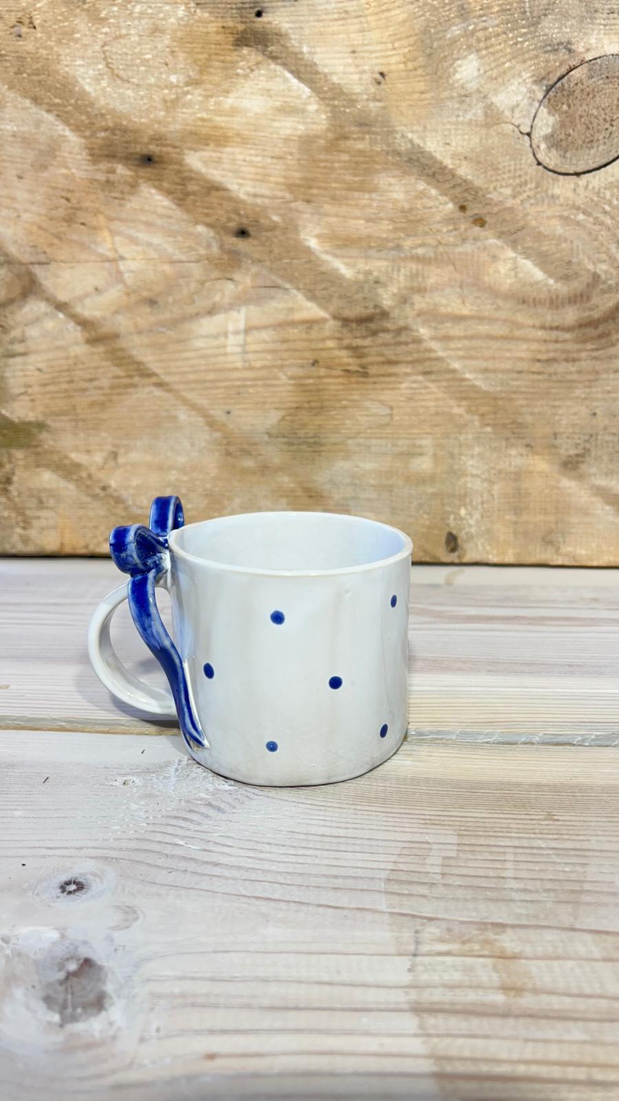 Kubek ceramiczny z kokardką i kropeczkami – ręcznie robiony | 300 ml