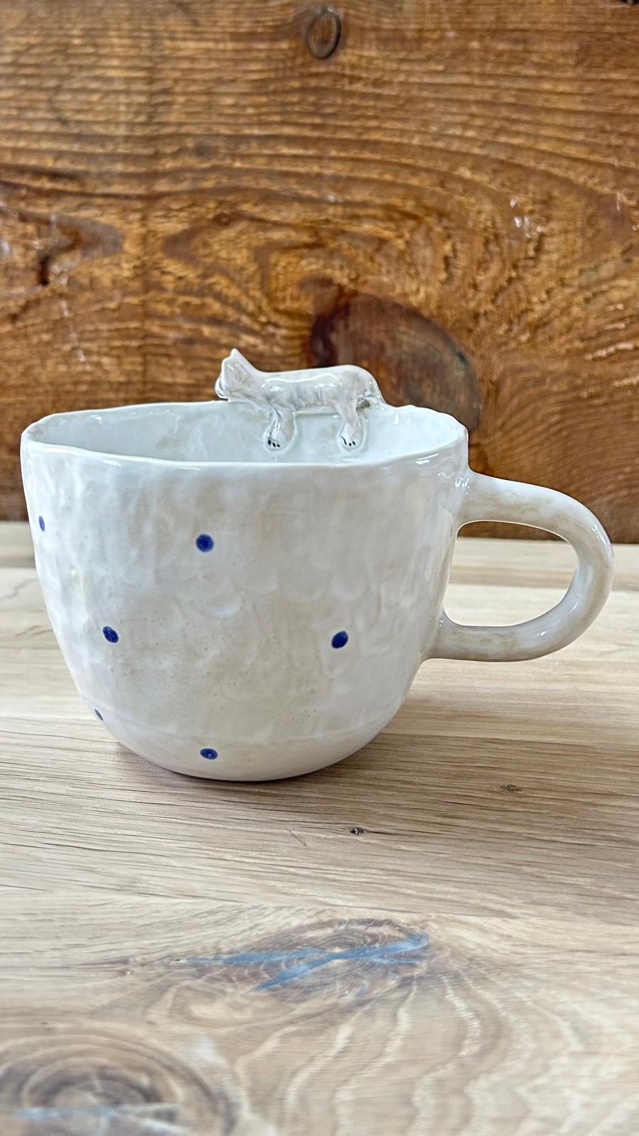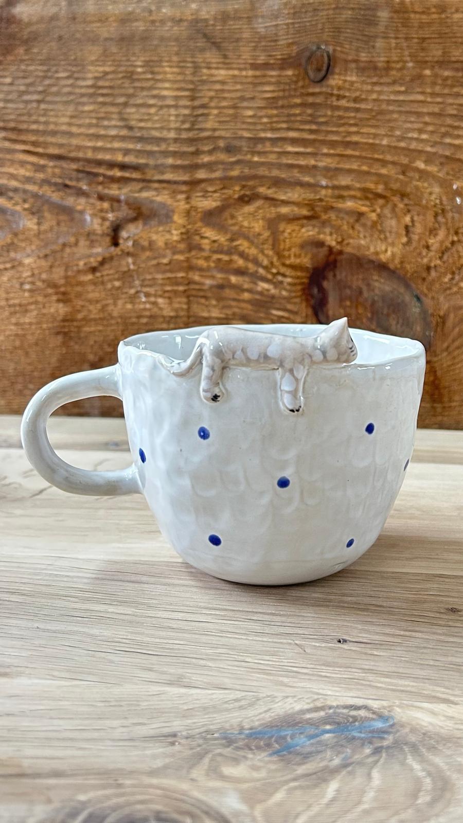 Kubek ceramiczny z kotem – ręcznie lepiony | 400 ml | K4