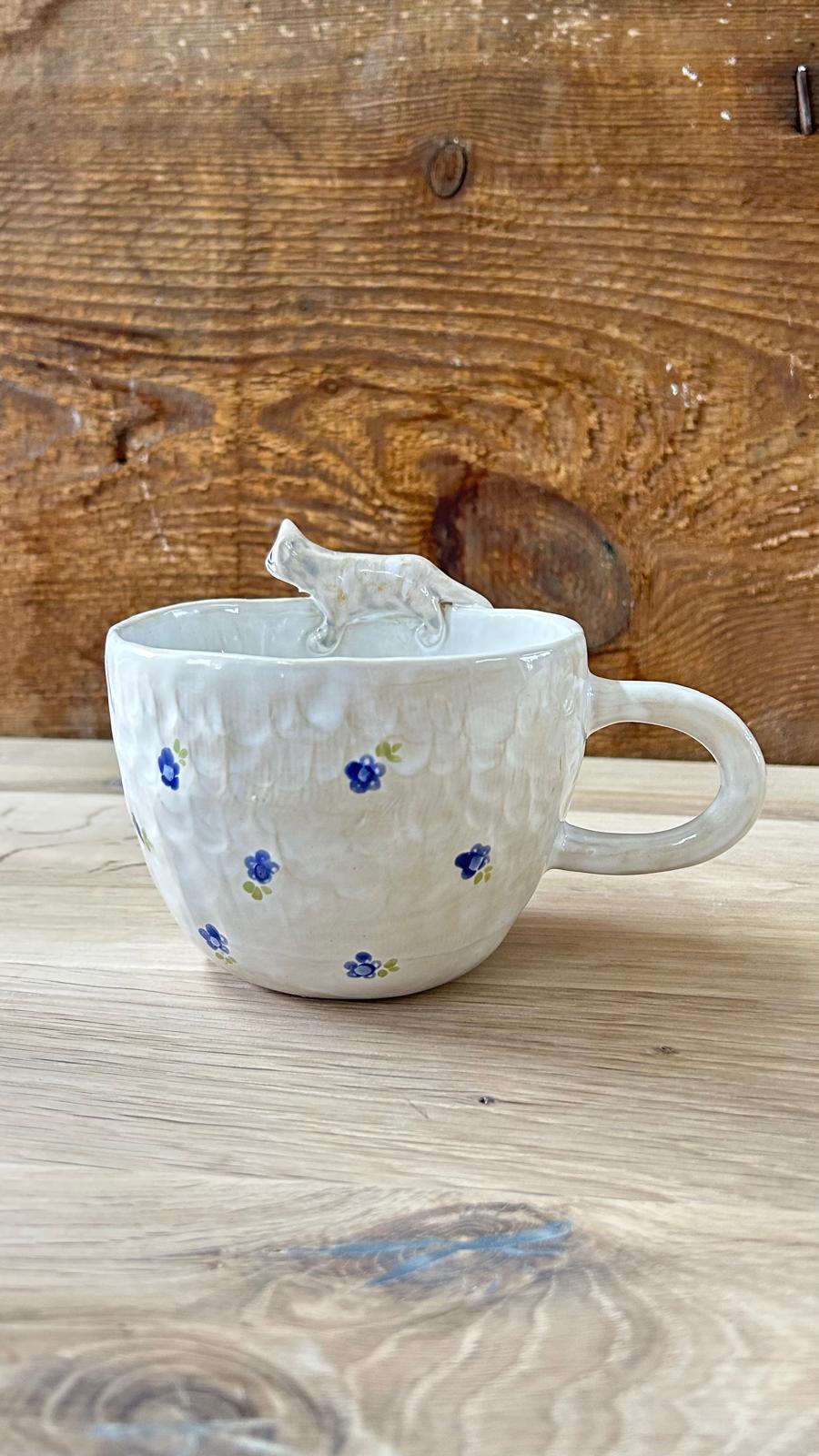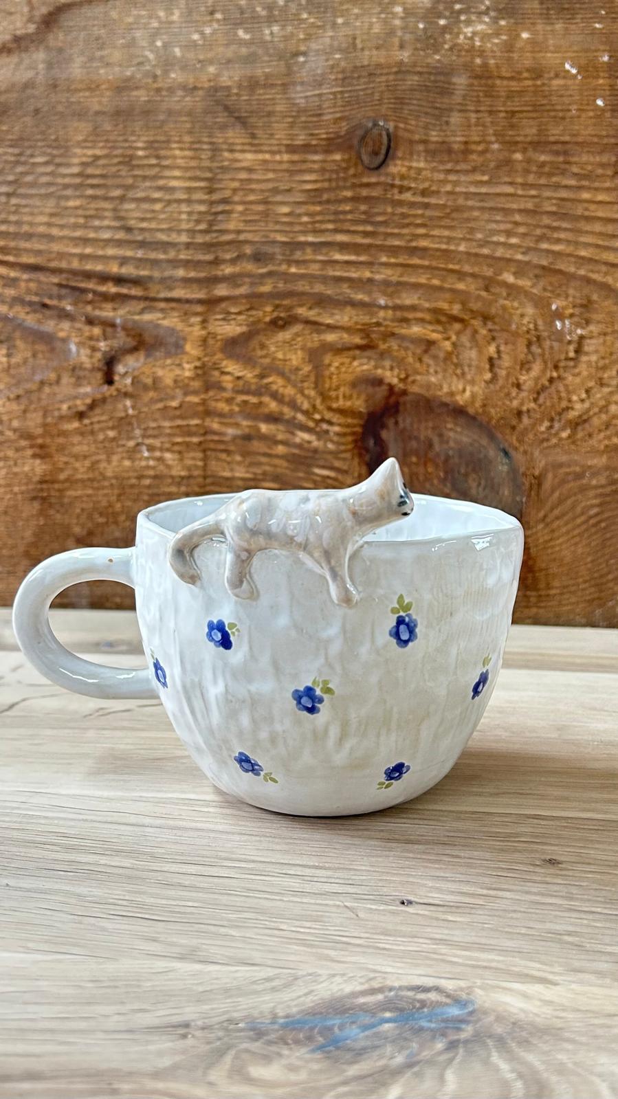 Kubek ceramiczny z kotem – ręcznie lepiony | 400 ml | K5