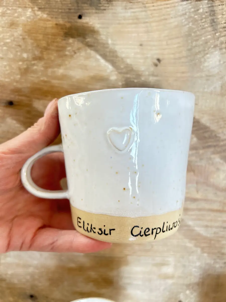 Ręcznie lepiony kubek ceramiczny "Eliksir cierpliwości"